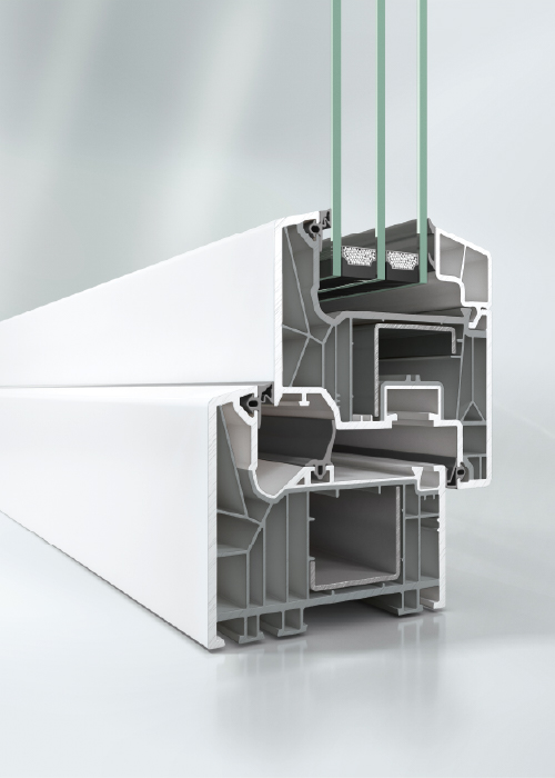 The slim profile system with a narrow installation depth impresses with excellent thermal insulation. Spacers ensure high insulation and optimal thermal transmittance values.